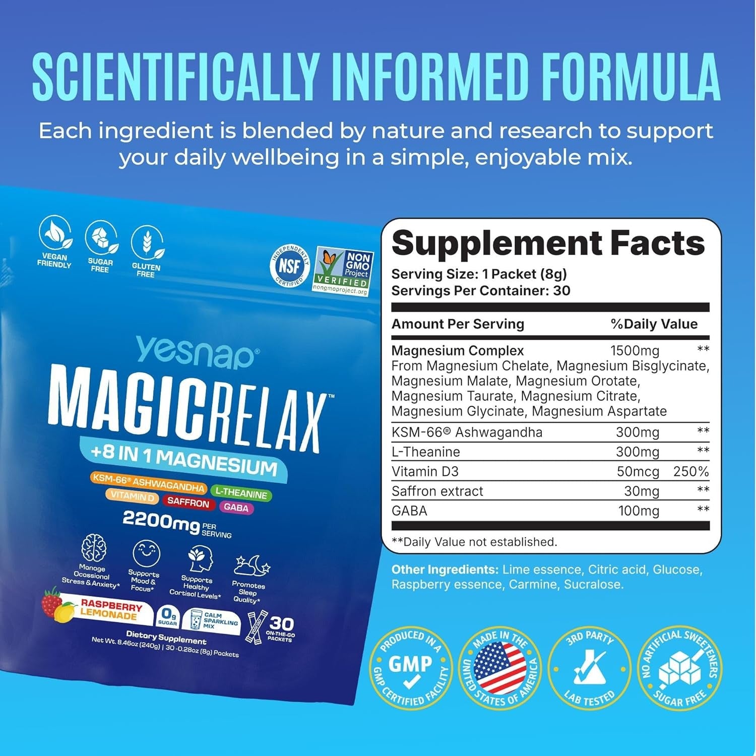 MAGICRELAX supports relaxation by combining amino acids, minerals, and botanical extracts commonly used to promote calm.